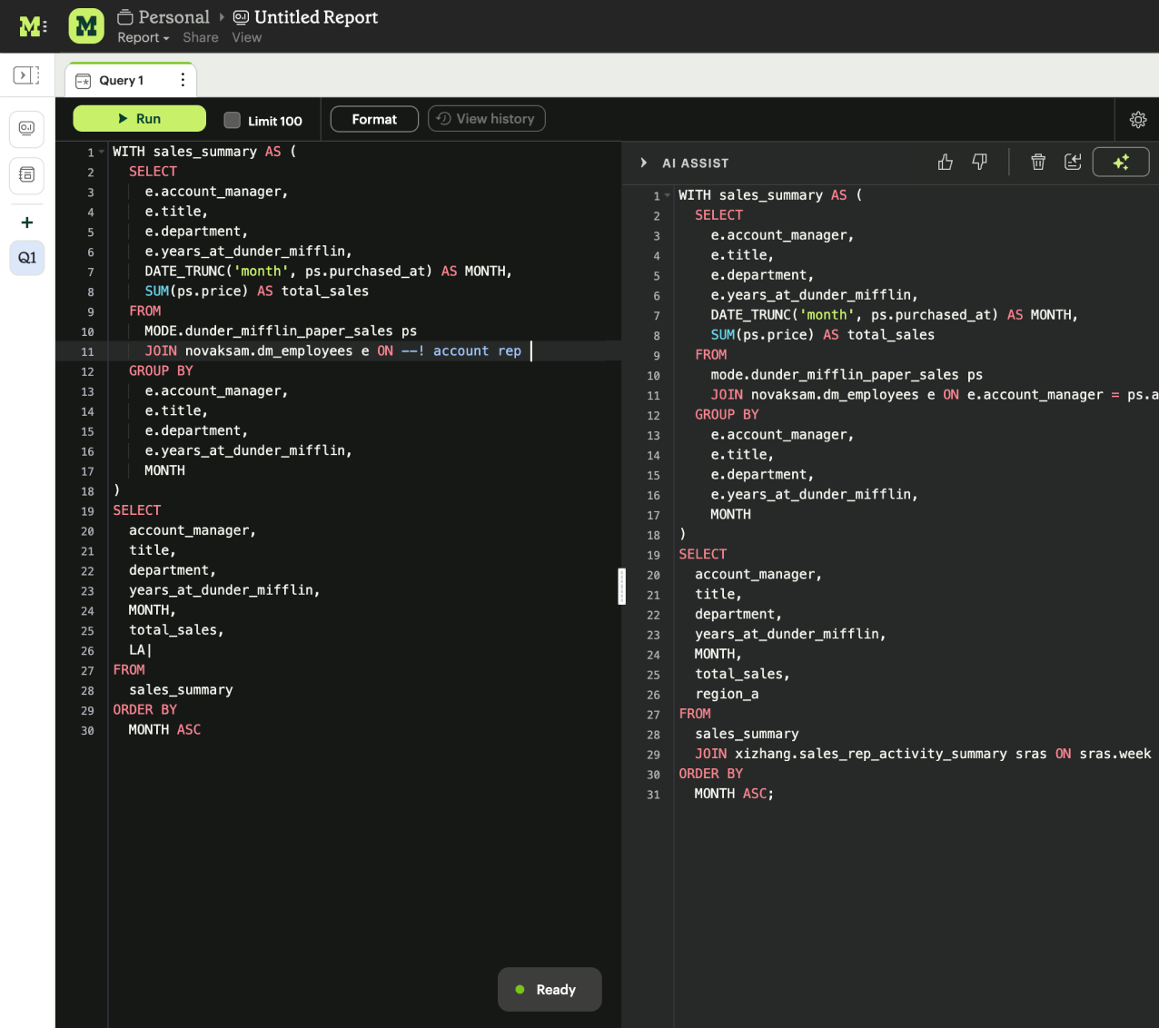 Write complex queries more efficiently by seamlessly integrating natural language into your SQL workflow leading to faster and enhanced business insights.
