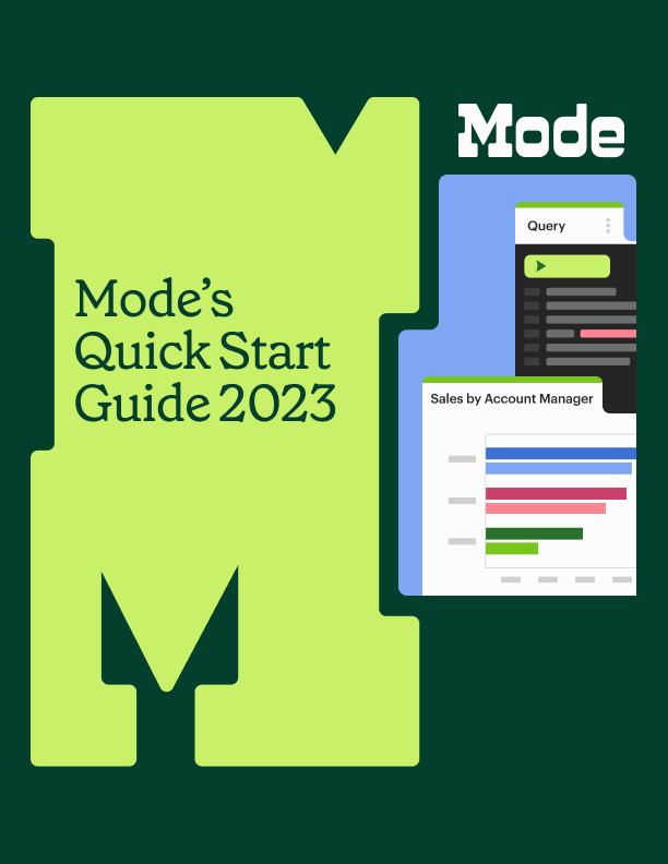 Learn how to get the data you need in Mode and then use the exercises to create reports for business-critical KPIs, sales, and product teams. At the end of the guide, we review how self-serve is best set up in Mode.