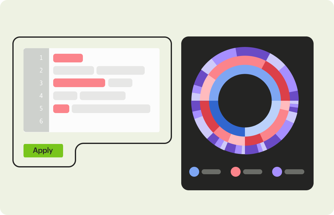 Build complex charts reflecting multiple cuts of data on top of your largest datasets to reveal insights quickly.