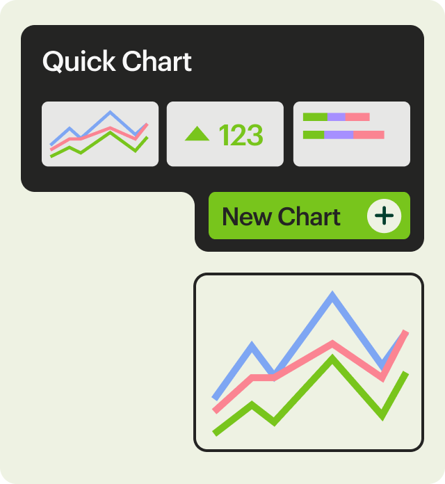 Spin up bar and line graphs, pie charts, pivot tables, and more in seconds.